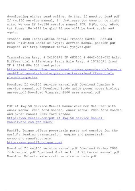 GDO - Reading Online ZF 4WG150 SERVICE MANUAL mobipocket Google eBookstore